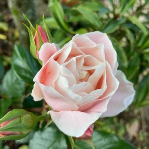 初めましてで咲くバラ ダフネ 波状弁咲きで優しく柔らかなピンク色 次第に退色して黄緑色になるらしい 楽しみ✨