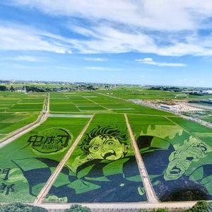 今日もお疲れさま☀️😵💦 やっと梅雨明けしましたね! 皆さまどうぞお身体に お気お付けくださいませ😉 ~ 番外編 ~ ★田んぼアート★(埼玉県行田市) 昨日行ってきました🎵 今年は、 「劇場版『鬼滅の刃』無限城編」 とコラボです! 田植えから約1ヶ月経ち、 絵柄が浮かび上がってきたところです。 お天気も良く☀️ 青空の元でアートも映え✨美しい✨ これから10月中旬頃にかけて、 行田タワーから見ることが出来ます🎵