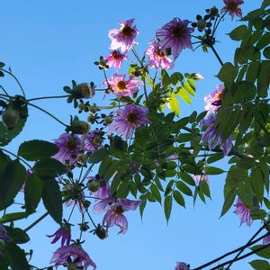 🏷️土曜日はお空の発表会 🏷️美しく青きドヨウ 🏷️ピンクワールドへようこそ サルスベリ 猿滑り ヒャクジツコウ 百日紅 お空に映えています ご近所散歩