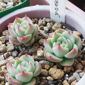 カルテ№289 エケベリア属 すみれ牡丹🌱 カルテ№309 エケベリア属 フンユウバン🌱 カルテ№361 エケベリア属 ツインベリー🌱 カルテ№364 エケベリア属 レモンベリー🌱 いやいや~、昨日の風にはビビりました💦音がものすごくて😱鉢に不釣り合いなほどの頭の大きさしてる「高砂の翁」が夜中にひっくり返ってました(笑) 皆さんちは大丈夫でしたか?うちは、寒波の予報が出たんで今週は水やりをストップしてたし、気温の予報は昨冬の大寒波に比べたら大したことなかったんですけど、風が強すぎて凍るかも!?と心配でしたが、無事に乗り切りました👍 さて、前の2投稿で我が家に居る「大好きなエレガンス系」をご紹介しましたが、なんと!私としたことが「team・ラズベリーアイス」を忘れていたので追加でご紹介を🤭🎶 ↖️エケベリア属 エレガンス 'ラズベリーアイス' 2017年12月にお迎えして5年目に突入。急がずにじっくり「ギュッと」育ててます。ジワジワと子吹きラッシュで楽しみ。これから春に向かってしっかり色付いてくるとめっちゃ可愛くなるはず🤭💕 交配種じゃなくて、エレガンスの赤紫っぽくなるタイプを品種固定したもの(選抜種)です。 ↙️エケベリア属 フンユウバン 2020年1月にお迎えして2年目。我が家ではまだまだ若輩者です。上のラズベリーアイスと2つ前投稿の花月夜の交配種。好き × 好き の交配なんで大好きに決まってますな❣️ゆえに積極的に殖やし中😆なんで、こんな名前付けたんかいな!?👀もうちょっとオサレな名前ならもっと人気が出るはず🤣 ⬇️エケベリア属 ツインベリー 今年の2月にお迎えした子で今回が初の冬越しという、我が家のペーペー組。(おそらく)韓国で交配されたものと思いますけど、韓国苗って交配式を公表してないものが多いですよね💦企業秘密なんですかね(笑)でも、片親はラズベリーアイスだそうです👍 ↘️エケベリア属 レモンベリー 上のツインベリーのオマケでもらった子なので、この子もペーペー。ツインベリーと色味は全然違うけど、この子も片親はラズベリーアイス。こんなふうに悶々とするんで、素性の分からん韓国苗は極力お迎えしないようにしてるんですけど、オマケでもらったんで育ててます😂 ↓「team・ラズベリーアイス」ではないけれど、忘れてたエレガンス系をもう2つ。 ➡️エケベリア属 エレガンス 'ポトシナ クリスタルローズ' 2019年11月のお迎えで3年目の子です。ロゼットが歪になってしまってて、ちょっと残念ですけど、色味が好きです😍 エレガンス 'ポトシナ' の選抜種という位置付けなんでしょうか!?🤔ヨクワカラン ↗️エケベリア属 すみれ牡丹 バイオレットクイーンっていう学名ですが、すみれ牡丹という名札で2019年10月にお迎えして3年目。昨冬の大寒波でやらかして、瀕死の状態から救い上げ、頑張って復活させ中👍父親不明のエレガンス交配です。 「たっちんの○○○」タグをタップでこの子たちの生長記録のみどりのまとめが簡単に見れます😊🎵 。* ❤︎… 今日のひと言 …❤︎*。 寒波のアナウンスが出たら外の子たちの水やりはストップ、仕方なく水やりしたら夜は室内へ☝️