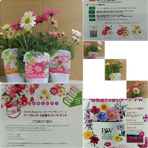 撮影:2021/03/06 Green Snapフォロワーキャンペーンから荷物が届きました。 ラッキーな事に当選品でした。 マーガレット 3種類 マーガレットの育て方 2021年PWお花のカタログでした。 花名は ・シンプリーコラール ・ストロベリーホイップ ・ディジーイエロー です。 育て方によると、 単体で鉢植えの場合は20~25cmに植えて下さいとの事なので大株になると期待してきょう植えてあげよう。 外は凄い風で窓がガタガタと騒がしいけど。 PW さんありがとうございます。