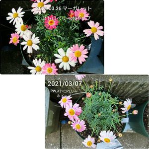 撮影:2021/03/12 3/6日に到着した当選品 Green Snap フォローアップキャンペーン当選品のPWマーガレット 発色よく成長しています。
