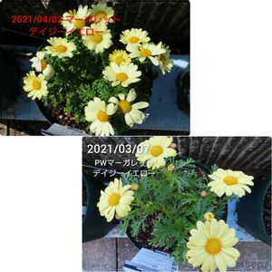 撮影:2021/04/02 Green Snapフォロワーキャンペーンで頂いたPWマーガレットです。 ディジーイエロー こんなに咲いてくれています。