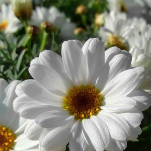 マーガレット ホワイトモカ だいぶお休みでしたが~😆 又ポツポツ開きだしました~🎶 蕾もいっぱいです🤍🤍🤍🤍🤍🤍🤍