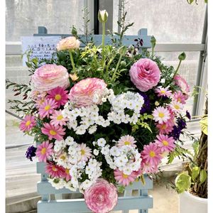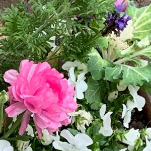 ♡ ラナンキュラス ♡ ♡ ビオラ ♡ ♡ レース ラベンダー ♡ ♡ 葉牡丹 ♡ 今日は もんもんチャン 主催の キュンキュン乙女倶楽部 倶楽部活動の日 「2021 桃色吐息」 参加させていただきます 冷たい 雨の中☔️ 咲いてます。