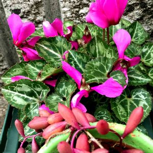 🌸ガーデンシクラメン&ルビーネックレス🌸 キュンキュン乙女倶楽部の部活動です 玄関の階段に置いてある雨ざらしの シクラメン&ルビネちゃん 雨が降っても、めちゃめちゃ暑くても 雪が積もっても元気ないい子たち💓 昨夜0時頃、家の中で黒ポットに種まきしました🤏 ミニトマトやパプリカ、ナスや少しのお花🌼 今夜は第二弾で、キュウリやとうもろこし🌽も 種まきしちゃおうかな。 .