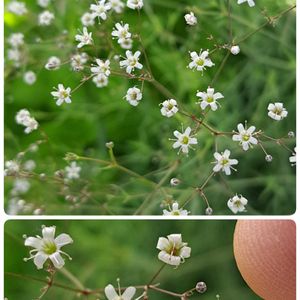 小さい小さいカスミソウさん🎵 が咲きました~✨ どんだけ小さいか指と比べてみました🎶😆