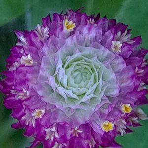 キンギョソウの鉢から何やら出てきて抜かずに置いてたらこのお花が咲きました~✨ センニチコボウ🎵なんだって…GSで知りました…でも何処から来たのかな?😆