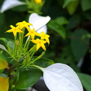 ヒョロ~って伸びた茎の先にハンカチの木コンロンカさん🎵黄色のお星さまが可愛いです✨💖😍