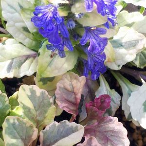 娘がくれた アジュガ🎵 よく見たら… 葉っぱ綺麗や~✨ 花も形が変わってる けど 好きな色💖😌