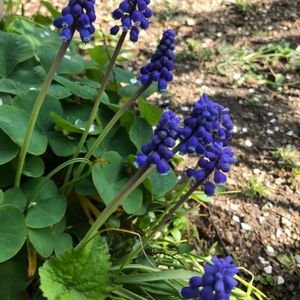 ムスカリがオキザリスの葉をかき分けて自己主張して咲いてます😂💜💙💜 ちゃーんと見えてるからね💕