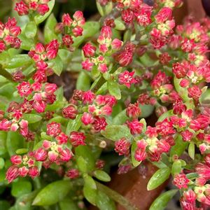多肉(名前忘れました💦)のお花が小さくて可愛いのが満開です💞 赤いお花は珍しいかも❤️🔥 シノクラッスラと教えていただきました。 ありがとうございます💞