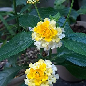 ランタナイエロー🎵 黄色いリボンから咲きすすむと まわりが白くなってきて可愛いです~💕😍 このお花は思い入れがあってお迎えしました…💓😌