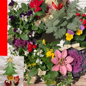 〈 寄せ植え 〉アブラナ科の植物 ⚫︎ハボタン(葉牡丹) アブラナ科 多年草 鮮やかな葉を 鑑賞する植物です 非結球性ケールから改良されたものと 考えられています ⚫︎スィートアリッサム アブラナ科 花色 白、赤、ピンク、オレンジ、紫 高温多湿に弱く一年草として扱われて きましたが 夏にも耐え花つきの良い “スーパーアリッサム”という品種も 出回っています❣️ 寄せ植えやグラウンドカバー、花壇の 縁取りやハンギングバスケットなど 様々な用途があります ◎放ったらかしのポット苗を 取り急ぎ 植えてみました (未完成ですが) クリスマス飾りを 少し加えたら クリスマスバージョンに! まだ 他のお花を増やして お正月も 活用していきたいと思います❣️