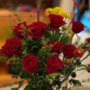 おはようございます☀️ 昨日は風が強く 何回か鉢が転がりました😅 今朝のお花は 真っ赤なバラ🌹 いつも行く洋服屋さんのアレンジ💐 店内は秋色冬色 真っ赤なバラが華やかでした♥️ 🏷 真っ赤な火曜日 参加させていただきます