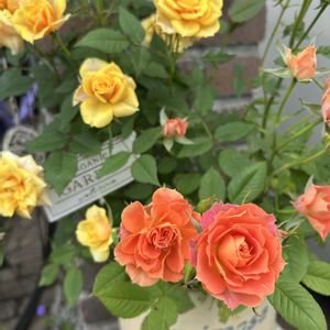 #セントラルローズ ミニバラ🌹 イエロー&オレンジ🧡 門柱の所で 華やかに咲いてます♪