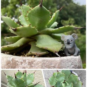 勝手に7日は爪エッジ棘の日🏷 毎月7日はアガベの日🏷今日はもう一枚参加しまーす😁 ↘️雷神(カキコを購入) 少し大きくなりましたー✨ アガベの赤ちゃん達 五色万代はわかるのですが、他は誰なのかわかりません😅💦 アガベを育て始めたばかりの頃に植え付けたアガベ達の赤ちゃん 育つとは思えない大きさだったので適当に小鉢に植えておいたら大きくなりましたー😁