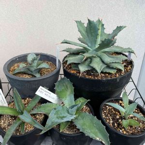 アガベの日 うちのアガベちゃんたち。 ブランドアガベはありません😭 名無しアガベで良いなと思った子株をちょこちょこ入手して育成中。 ほぼチタノタだけど、右下のホリダは3号サイズながら鋸歯がご立派な期待株。