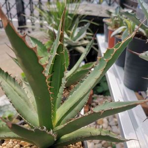 毎月7日はアガベの日‼️ 勝手に7日は爪エッジ棘の日❣️ 奥に白鯨とハデスとF0-22が,見える❗️ あと,ブルーグロウ❣️