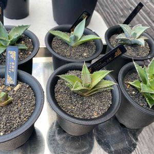 おはようございまーす! 毎月7日はアガベの日、参加しまーす😁 チビアガベ、それぞれ成長中でーす✨ 今日も仕事頑張りまーす(๑•̀д•́๑)و ̑̑