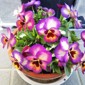 《良く咲くすみれ》 種から育てたパンジー きれいに咲いています 私の推しはオレンジ色 紫色と並んで ビビッドなpicになりました