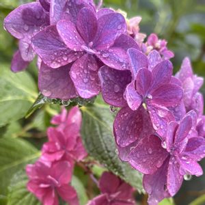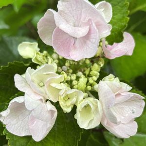 ピンクの八重咲ガクアジサイ🥰💕同じ株なのに、、色味が違って咲く!🩷💜不思議〜🤔楽しい〜🥰🎶
