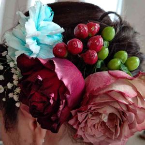 昨日は次女の成人式用写真の前撮りでした📷。 「とにかく盛りたい‼️華やかにしたい‼️」という要望を取り入れていただき、着物とセットになっていたコサージュ(赤・黄・緑)の他に着物屋さんのサービスでファーをいただき、自作のヘッドドレス(7月投稿)と娘自身がオーダーメイドしてもらったドライフラワーのヘッドドレスでてんこ盛りに。 左右で見え方が違うので両方載せてみました😀。