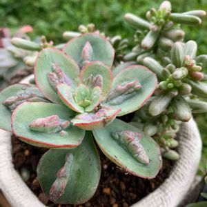 こんばんは😊 我が家のこぶエケさんです💖 ⬅️『バロンボールド』 去年、農家さん👩🌾が野菜を安く売ってる店で見つけました😆 その時はダラーンと伸びた緑の葉にコブがついててちょっとキモチワルイ💦…と思いつつ…安かったのでとりあえずお迎えした子です😅 うちに来て半年以上経つかなぁ…可愛い色になりました☺️ コブも見慣れたのか、可愛らしいです😆💓 茎が伸びてたのでチョンパ✂️しました😊 中にはコブが消えちゃう事もあるみたいですね💦 綺麗に育ちますように🙏🍀✨ ➡️『レインドロップ』 今月お迎えしたばかりです💖 こちらのコブは水玉みたいで可愛いかな😍 この子もまだ発根してません… 元気に育ちますように🙏🍀✨