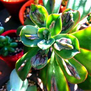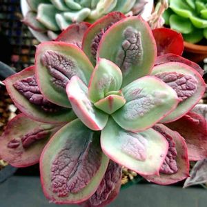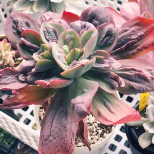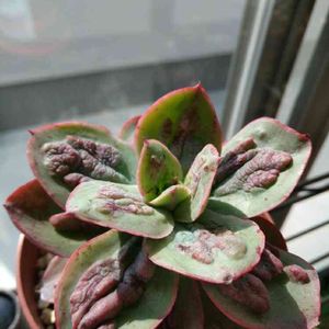 キモカワ系(థิഋథิ) 夜に部屋へしまわない日々が続き、 先月投稿に比べ赤くなっていた😅 室内より元気でコブコブも成長したけど、 寒そうかな💧 購入したときは若干ふにゃ2だったけど 今は固め(しかし徒長) 後に売れ残り買った一鉢も外だけど それほど紫ではない😅