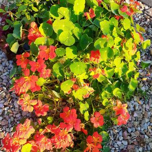 おはようございます花🌼 なが~く咲いてくれるナスタチューム。夏の間ずっと咲いてくれる頑張りやさん。しばらく留守してましたが、今朝も(*≧з≦)可愛いです。