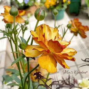 ラナンキュラスラックス サティロス 昨年は、細ーい 小さーい 花数も少ない、エカキ虫も入っていた🌀か弱い苗でしたが沢山の花を付けて立派になりました❗