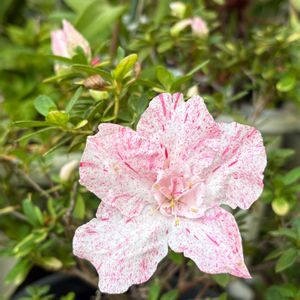 ❁. 。アザレア 'アクアレル'。.❁ 豪華な八重咲大輪のアザレア🌸 アザレアといえば 日本のツツジとよく似ていますよね🇯🇵 アザレアはヨーロッパで 室内用の鉢物として改良された 常緑性ツツジの総称です✽.。 西洋ツツジとも呼ばれています🩷 花は大輪で八重咲なので とってもゴージャスな雰囲気です 花色はピンクや赤、複色など 色鮮やかで華やかなものが多い印象です♡ そんなアザレアは 国内では新潟県が生産量日本一!! 新潟が誇るが花のひとつです🌾 そんなアザレアの中から 今日ご紹介するのは「アクアレル」 ホワイトの花に淡いピンク色が スプレーされたように散斑する とってもかわいい花色💕 お花は長期間楽しむことができるので プレゼントにもおすすめです💐 *育て方* 日当たりが良く風通しの良い場所を好みます。 冬場は室内の明るい場所で管理してください。 水やりは土の表面が乾いたらたっぷりと。