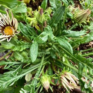 冷たい風です☔️ ぼーっと花を眺めています💦 渋い色のガザニアの蕾4つ💕 🏷yuyuさん主催の金曜日の蕾たちに参加します。