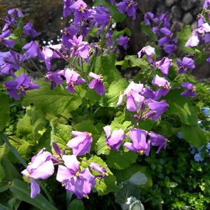 ショカツサイ(ムラサキハナナ)、アブラナ科 最近覚えたお花です。神社の境内で、咲くのを楽しみに待っていました。花壇でも見かけます😌