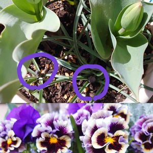 🏷(祝)チーム・ブルー2周年 🏷チーム・ブルー◆青い花を育てよう! 🏷青い花とその葉を写そう!2022 ㊤1月20日に発芽した芽に、蕾が付きました🙌🌷🍇 🔵チューリップ(どれか紫)3球 ➕ムスカリ10球 🔵2回目(3月23日) 🔵蕾が付きました😆💜 🔵プランターに寄植え、戸外 ㊦あっと言う間に数日でムスカリが伸びてます😲 🔵よく咲くスミレミュール・パルム・マリーヌ➕ムスカリ 🔵2回目(3月23日) 🔵プランターに寄植え、戸外 🔵芽が出たと思ったら雪にも負けず成長しています🍇🌨