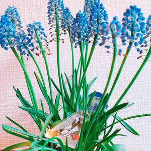 「ムスカリ💙」さん 以前より、背丈も伸びました お部屋の中で育てていたのですが 温かくなったので、玄関に出してます ユラユラして可愛いです💙 🏷(祝)チーム・ブルー2周年