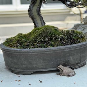 そう、この間の日曜日に盆栽をどかしたらカエルがでてきた🐸 もう冬眠から目覚めちゃったのかな🐸 ちなみに今日もまだ同じ場所に隠れてます^_^