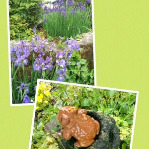 こんにちは😊 曇り空☁️ 暑くないので少し裏庭の整理 ①② シェードガーデンのアマドコロ あっという間に伸びてお花がぶら下がってた ③ お目覚め🐸1号🎊 眠そう(*pω-)。O゜