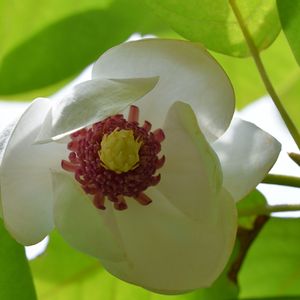 ✤オオバオオヤマレンゲ(大葉大山蓮華)✤ モクレン科の落葉低木 花期:5月~6月 オオヤマレンゲより葉が大きく、雄蕊が赤紫色。名前の由来は、奈良県南部の大峰山に自生していて、ハスの花(蓮華)に似た白い花を咲かせることから。 今年も出会えた、森の貴婦人✨ 2022.5.22 都立水元公園にて📷