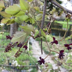 ミツバアケビのその後 ① 先だって、みどりのまとめにUPした、ミツバアケビが、ちょうど開花してました🥰 雌雄同株で 雌雄異花。 上に付いてるのが雌花で、花弁に見えるのは萼片です。 雌しべは、3〜6個とざっくりな植物😅 下に付いてる“飴ちゃん”が 雄花。 筋のように見えるのが葯で、中に白っぽい花粉がスタンバイ。 スマホpicなので、少し見辛いですが、飴ちゃんが落ちて 萼片だけになった雄花が、一つ。 それを、ギューっと拡大してみると、中心部に、小っちゃい突起物が… この突起物、雌しべが退化した跡のようです😳 同様に雌花にも、雄花が退化した痕跡があるので、おそらく、元々は両性花だったのに、何らかの理由で、雌雄異花にシフトしたようです。 もう一枚続きます…