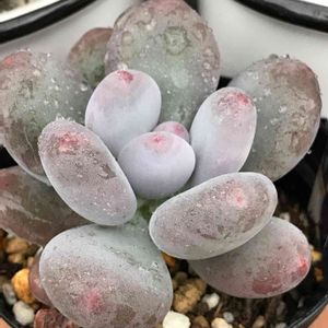 おっはよ〜ございま〜〜す❗️ ニコちゃん大王でございますよ〜〜‼️ 今朝の投稿は グラプトペタルム属の 🌸桜牡丹さんだよ〜ん🌸🌸🌸🌸🌸 片親は朧月で、見た感じは ほんと、朧月‼️だから 暑さにも、寒さにも強い子だよ〜‼️ 桜牡丹は成長点付近が、桜色になるから とっても可愛いんだけど 先月の長雨で、桜牡丹丼の株達は今、 みんな朧月??って感じ💦💦💦💦💦 でも、そんな中に1つだけ、 茎から可愛い芽が生まれてて、 その芽をアップでパシャリしたんです❣️ たまらん色した桜まんじゅう🌸 ちっちゃくても、 ツヤッツヤ‼️ プックプク‼️ 多肉の赤ちゃんもかわいいよね〜〜❣️ いいもの見れたよ〜‼️ 今朝は腫れてるよ〜‼️❣️‼️❣️‼️ 3週続けて週末が雨だったから 久しぶりの週末の晴れは、嬉しいよ〜 午前中は植え替え❗️植え替え❗️ 岡崎に新しくできた多肉屋さんの Green rabbitさんへ 行きたいんだけどな〜〜 でも、明日の5日は、 となりのハルさんが出店してる 蒲郡市形原の赤い橋のマルシェに 行くのは決まってるから、そこで あれこれ買っちゃいそうだしな〜〜 でも、Green rabbitさんは まだ行ったことないしな〜〜 植え替えもたくさん残ってるしな〜〜 あ〜どれも楽しい❣️ 幸せな悩みだよ〜❣️笑笑笑笑笑 今日の投稿は桜牡丹だったから コブクロでも、聴きながら 植え替えしよっ〜っと‼️ そんじゃ、 今日は植え替え‼️ エンジョイするぞ〜‼️‼️‼️ みんなも、 週末をエンジョイしてね〜〜❣️