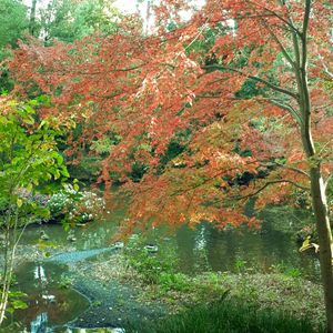 もみじ燃えゆる散策路 仰げば眩しいイロハモミジ