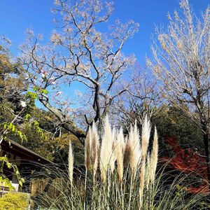 晩秋の景色 黄色い葉っぱが落ちた銀杏 栴檀の実 皇帝ダリア パンパスグラス イロハモミジ その他 三島市立公園楽寿園 (2021.11.28)