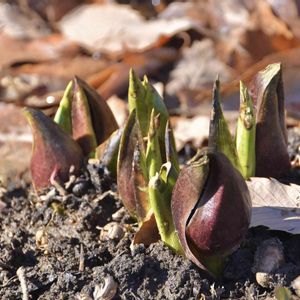 これはやっと芽を出し始めました。 早春にいち早く立ち上がる「ザゼンソウ」、まだ残る雪を割って芽を出すために自己発熱する機能を持った花です😊