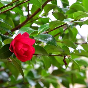 まだまだ頑張る寒椿。 ハッっとするほど鮮やかレッド。