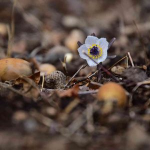 春の妖精便り 2022 おはよー。 元気な挨拶が聞こえてきたよう😆 和紙のような萼片 黄色い棒状の花弁 で、紫色の蕊 セツブンソウはやっぱりとってもオシャレさん🥰 で、顔を出したばかりのこのくらいのサイズの子が好きー🥳 2022.2.13.みかも山公園