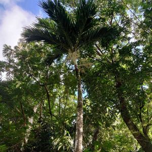 ビロウヤシ、かと思います。 黒い実がいっぱい。 ぶどう🍇、もしくは黒オリーブみたいで美味しそうです。