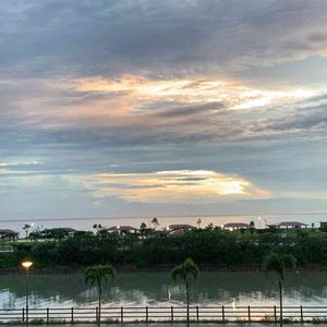 キレイな夕焼けでした。 うちの前のココヤシと大きなマンゴーの木。