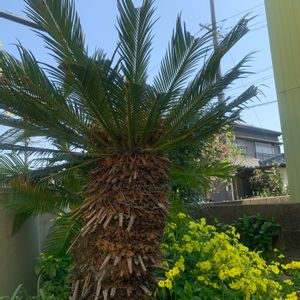 実家の椰子の木🌴この椰子何の椰子? ココスヤシ?カナリーヤシ?→蘇轍でした 🌵ドライガーデン🌴を作りたいなーと、実家のサボテン🌵物色しに普段あまり立ち寄らないサイドガーデンに行ってみたら椰子の木🌴が!なんと17年も前からずっと生えてるわよ、と言われてびっくり👀私どんなにぼんやり庭をウロウロしていたんでしょ💦さて、この椰子の種類は何でしょうかしら?