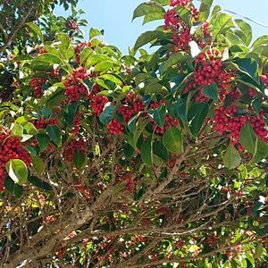 こんばんは⭐ 青木の実がいつの間にか、赤くなっていました❣️